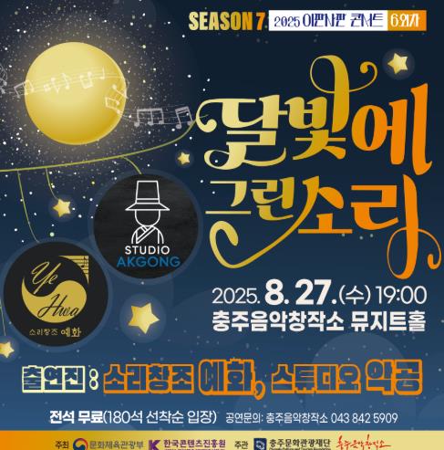 [무한뉴스=정민정 기자] 충주음악창작소는 오는 8월 27일 오후 7시, 창작소 내 뮤지트 홀에서 ‘2025 음악창작소 프로그램 운영지원 사업’의 일환으로 이판사판 콘서트 시즌7의 여섯 번째 공연인 '달빛에 그린 소리'를 선보인다.
