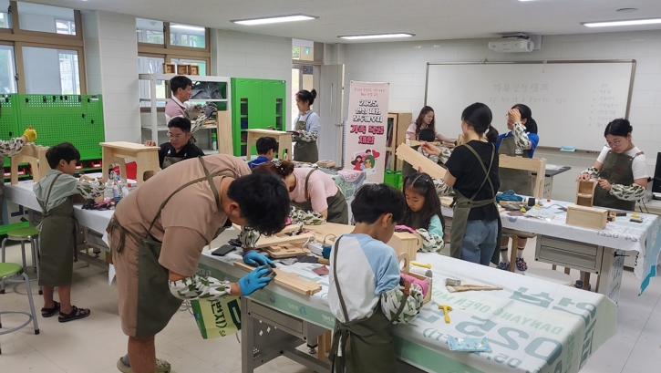 학생들은 부모님들과 함께 두 칸 손잡이 다용도 꽂이와 현관 스툴을 직접 조립하고 스텐실 작업을 했다. 가족 체험에 참여한 한 학생은 “엄마, 아빠와 함께 목공품을 만들어서 정말 재미있고 신이 났다.”라고 말했고, 학생의 어머니께서는 “가족이 함께 힘을 모아 목공예품을 제작하는 과정을 통해 서로에 대한 이해와 정서적 유대감을 높이는 소중한 시간이 됐다.”라고 소감을 전했다.