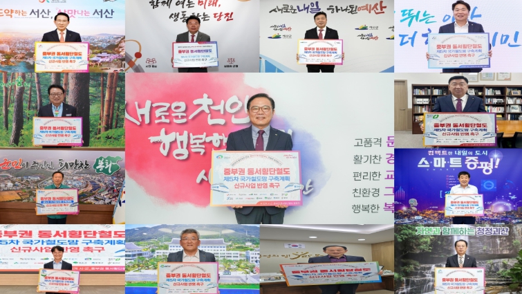 | ▲ 1. 13개 지자체장이 중부권 동서횡단철도의 국가계획 반영을 촉구하는 SNS 릴레이 챌린지에 참여했다. |