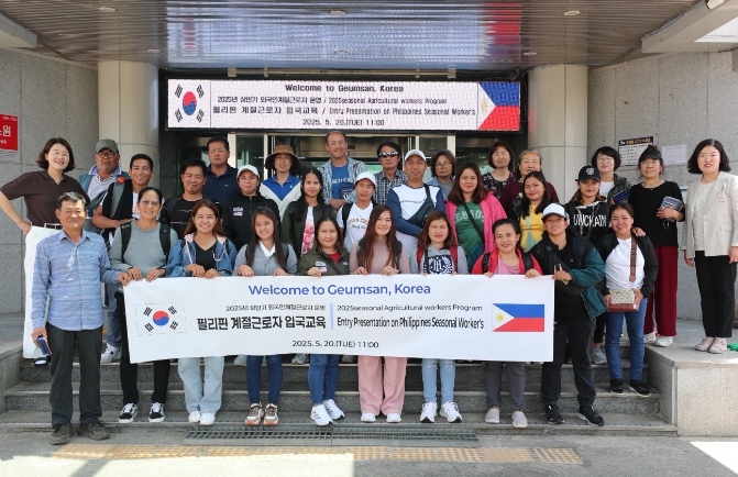 이들은 지난 2023년 필리핀 사블라얀시와의 우호협력 업무협약을 통해 선발된 인력으로 고용주 사전협의 및 비자 발급 등 엄격한 절차를 거쳐 선정됐으며 5개월간 금산군의 농가에 배정돼 깻잎과 상추 수확 등 작업에 투입될 예정이다.