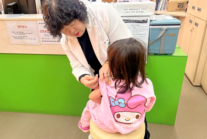▲ 창녕군보건소를 방문해 홍역 예방접종을 받는 어린이 모습 |