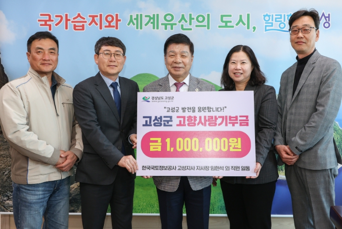 [무한뉴스=최진수 기자] 고성군은 4월 15일 한국국토정보공사 고성지사(지사장 임현석)와 직원들이 고향사랑기부금 100만 원을 기탁했다고 밝혔다.
