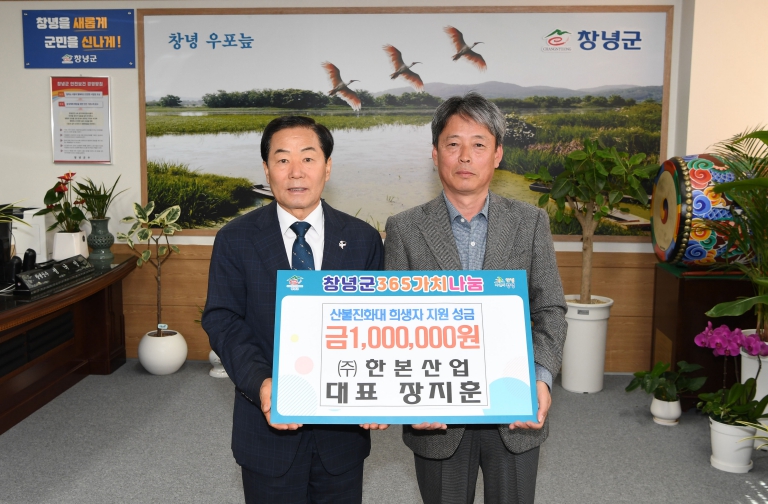 지난 16일에는 ㈜한본산업이 성금 100만 원을 기탁했다. 장지훈 대표는 “최근 내린 비가 그렇게 반가울 수가 없었다”며 “산불로 인해 피해를 입은 분들의 상처가 말끔히 아물기를 바라는 마음으로 성금 모금에 참여하게 됐다. 직접 위로를 전하지는 못하지만, 일상이 하루빨리 회복되길 진심으로 바란다”고 말했다.