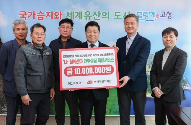 이번 사업에는 고성군, 고성우체국, 고성군사회복지협의회가 함께 뜻을 모았으며, 우체국공익재단에서는 따뜻한 마음을 담아 1천만 원의 기탁금도 전했다.