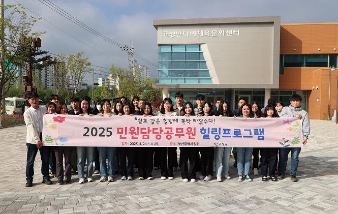[무한뉴스=최진수 기자] 고성군은 4월 24일부터 25일까지 부산광역시 일원에서 민원업무를 담당하는 공무원 30여 명을 대상으로 ‘2025년 민원담당공무원 힐링프로그램’을 운영했다고 밝혔다.