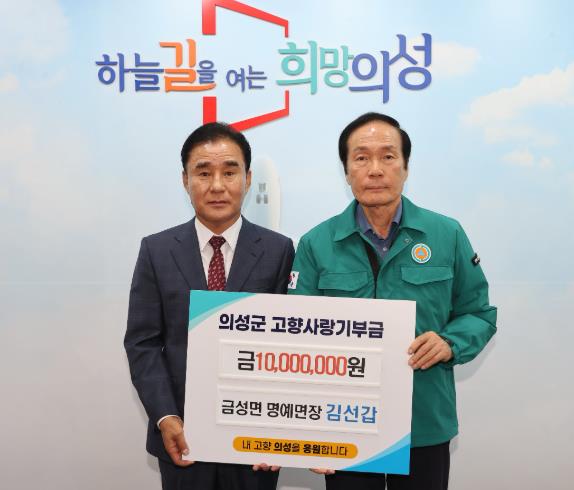 이번 기부는‘의성 산불 피해복구를 위한 긴급 성금모금’소식을 접한 의성군 명예읍면장협의회 회원들이 고향을 돕고자 하는 마음을 모아 고향사랑기부 특정사업으로 기부했으며 전직 명예읍면장들도 다수 동참해 의미를 더했다.