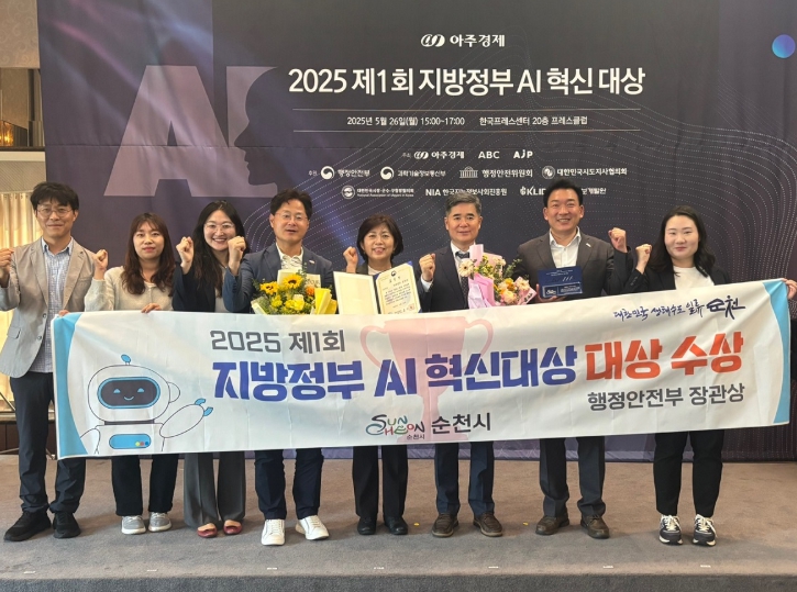 [무한뉴스=정민정 기자] 순천시는 지난 26일 서울 한국프레스센터에서 열린 ‘제1회 지방정부 AI 혁신 대상’에서 기초지자체 부문 대상을 수상하며 행정안전부 장관상을 받았다고 밝혔다.