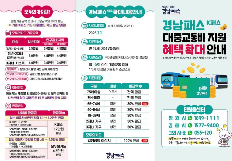 밀양시 관계자는 “2026년 경남패스 확대 시행으로 시민들의 교통비 부담이 실질적으로 완화될 것으로 기대된다”라며 “시민들이 제도를 정확히 이해하고 혜택을 놓치지 않도록 지속적인 안내와 홍보를 이어가겠다”라고 밝혔다.