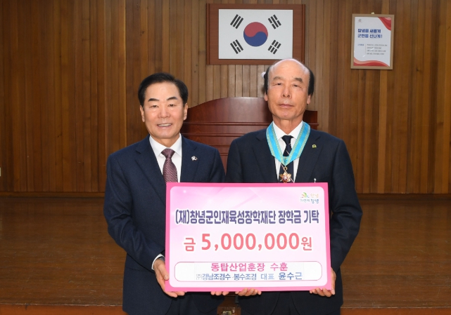 [무한뉴스=최진수 기자] ㈜경남조경수 윤수근 대표가 지난 1일 (재)창녕군인재육성장학재단에 장학금 500만 원을 기탁했다고 밝혔다.