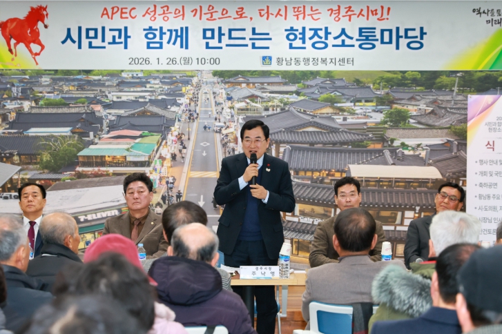 [무한뉴스=최진수 기자] 경주시는 26일 황남동과 황오동에서 ‘2026년 현장소통마당’을 잇따라 열고 주민들과 직접 소통하는 시간을 가졌다.