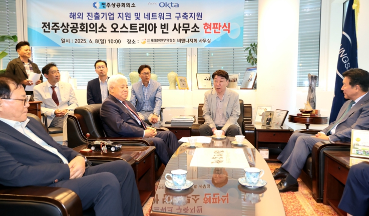 우범기 전주시장은 이날 축사를 통해 “전주시 주력 산업인 탄소소재산업의 글로벌 진출은 매우 중요한 과제이며, 오늘 전주상공회의소의 비엔나 사무소 개소는 우리 탄소기업들이 유럽 시장에 진입하는 데 든든한 교두보가 될 것”이라며 “전주시도 지역 기업들의 유럽 시장 개척을 위해 다양한 정책적 지원을 아끼지 않겠다”고 말했다.
