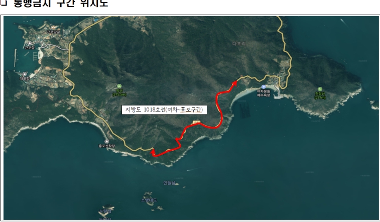 | ▲ 거제시 지방도 1018호선(여차~홍포구간) 전면 통행금지 |