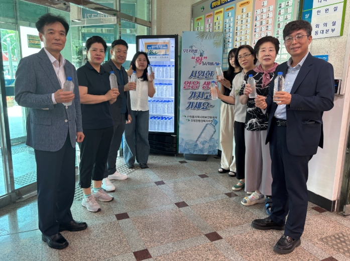 이번 사업은 폭염에 노출되기 쉬운 민원인, 폐지 수거 어르신, 노인일자리 참여자, 택배기사, 환경미화원 등 누구나 자유롭게 이용할 수 있도록 행정복지센터 입구에 음료용 냉장고를 설치하고, 말복까지 약 한 달간 매일 시원한 생수 100병을 제공하는 방식으로 운영된다.