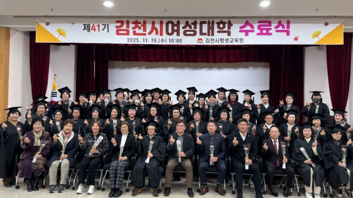 [무한뉴스=최진수 기자] 김천시는 지난 19일 평생교육원 3층 강당에서 가을의 시작과 함께한 '제41기 김천시여성대학'수료식을 성황리에 개최했다.