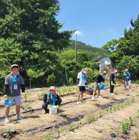 | ▲ 학생들이 농가에서 진행하는 농촘 체험 프로그램을 하고 있는 모습이다. |