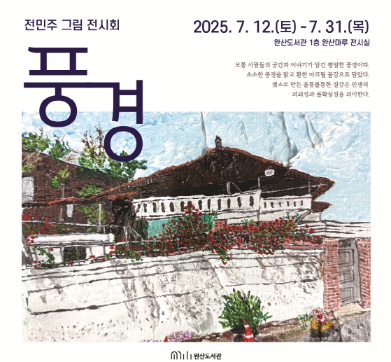 완산도서관은 하반기 전시 운영을 위해 지역 예술인과 문화예술 단체, 출판사를 대상으로 한 대관 공모를 거쳐 전시를 진행할 총 5개 팀을 선정했다고 10일 밝혔다.