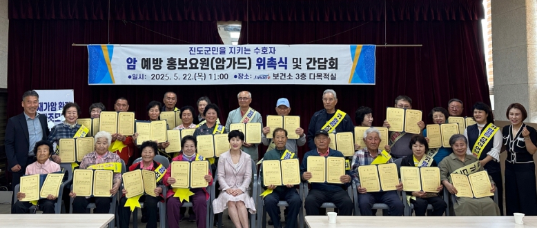 [무한뉴스=정민정 기자] 진도군 보건소는 최근, 지역사회에 암 예방의 중요성을 알리고 ‘건강 생활 실천’을 유도하기 위해 재가 암 환자와 가족 약 30명을 암 예방 홍보요원으로 위촉했다.