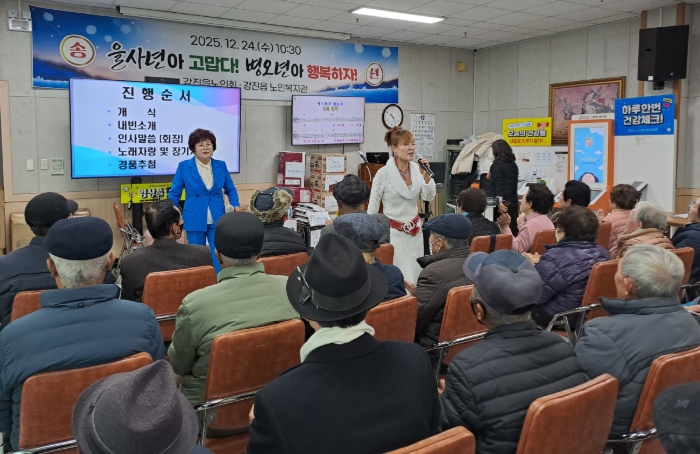 [무한뉴스=정민정 기자] 강진군 강진읍노인회(회장 김승복)가 지난 24일 강진읍 노인복지관 2층 강당에서 150여명의 어르신들이 참석한 가운데 2025년 송년행사를 성대히 마쳤다.