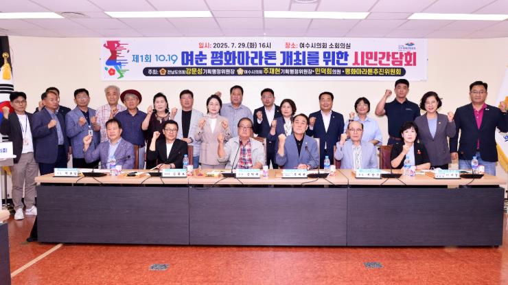 [무한뉴스=정민정 기자] 여수시의회는 지난 29일 소회의실에서 ‘제1회 10·19 여순 평화마라톤 개최를 위한 시민간담회’를 열어 대회의 안전·교통 대책·예산 확보 방안을 논의하며 시민 의견을 폭넓게 청취했다.