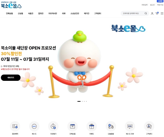 북구는 ‘북소e몰’의 새 단장을 기념하고자 오는 11일부터 이달 말까지 쇼핑몰에서 판매 중인 모든 상품을 30% 할인된 가격(최대 1만 원)으로 판매하는 이벤트를 진행한다.