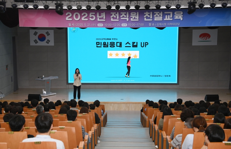 [무한뉴스=정민정 기자] 김제시는 시민에게 다가가는 민원행정을 펼치기 위해 21일 오전과 오후, 두 차례에 걸쳐 전직원을 대상으로 친절교육을 진행했다고 밝혔다.