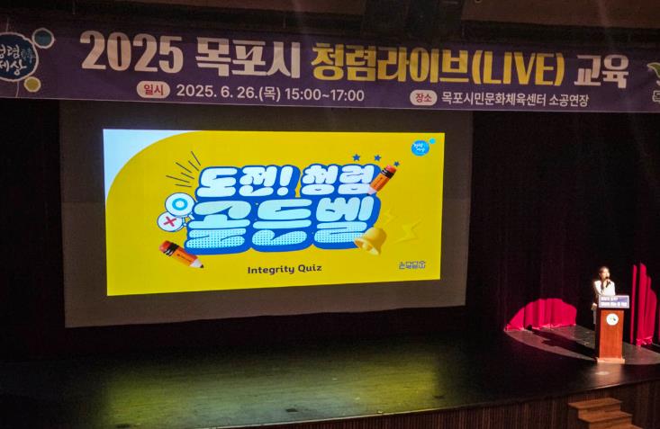 [무한뉴스=정민정 기자] 목포시는 지난 26일 목포시민문화체육센터 소공연장에서 ‘2025년 목포시 청렴라이브(LIVE) 교육’을 실시했다.