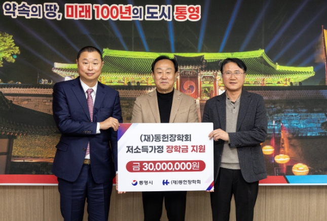 [무한뉴스=최진수 기자] 재단법인 동헌장학회는 지난 9일 통영시에 저소득가정 학생의 학업 지원을 위한 장학금 3,000만원을 기탁하며 지역 인재 육성에 따뜻한 뜻을 전했다.