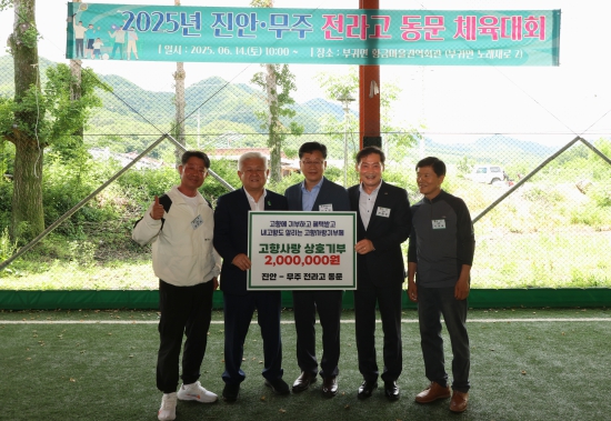 [무한뉴스=정민정 기자] 지난 14일 개최된 진안·무주 전라고 동문체육대회 행사에서 진안 동문들과 무주 동문들이 고향사랑기부금으로 2백만원을 서로 전달하며 훈훈한 정을 나누었다. 이번 기부는 지역간의 교류와 협력을 통한 상생발전과 고향사랑기부제의 성공적인 정착을 응원하는 마음으로 상호기부를 추진하게 됐다.