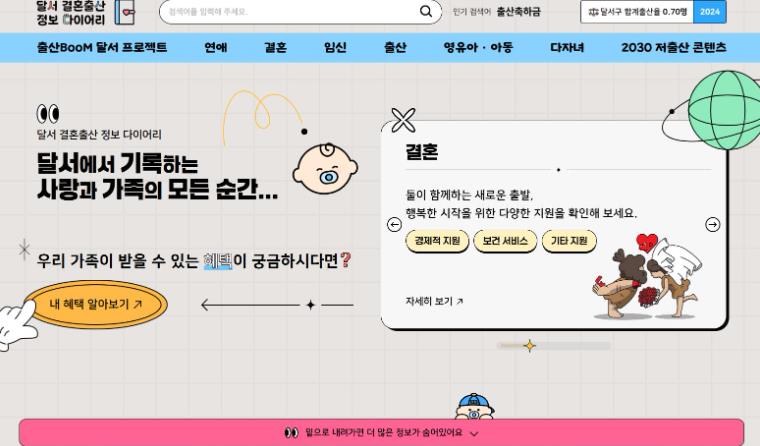 | ▲ 달서 결혼출산 정보 다이어리 플랫폼 메인화면 |