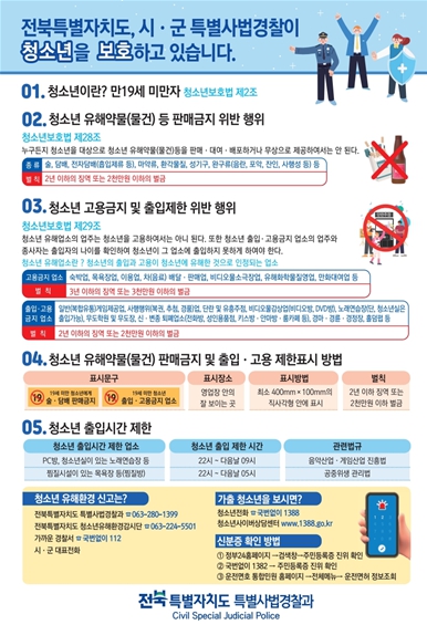 오택림 전북특별자치도 도민안전실장은 “청소년들이 안전하고 건강하게 방학을 보낼 수 있도록 유해환경 정비에 최선을 다하겠다”며 “음식점과 편의점 등 업소에서는 신분증 확인을 철저히 해 술과 담배가 청소년에게 판매되지 않도록 협조해달라”고 당부했다.