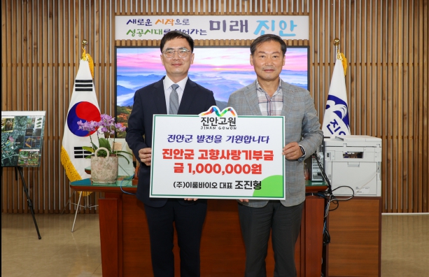 [무한뉴스=정민정 기자] ㈜이룸바이오 조진형 대표는 23일 진안군에 고향사랑기부금 100만원을 기탁하며 지역사랑을 실천했다.