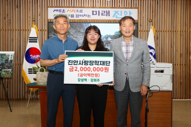 [무한뉴스=정민정 기자] 진안사랑장학재단(이사장 전춘성)은 23일 강성백·강희주 씨 부녀가 장학금 200만원을 기탁했다고 밝혔다.
