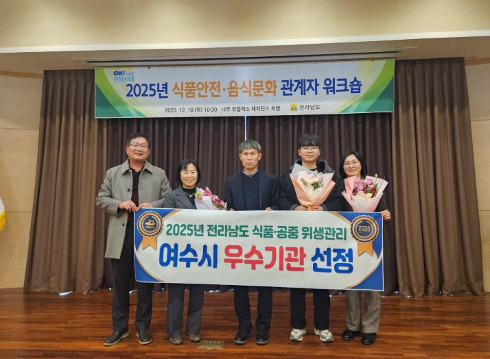 [무한뉴스=정민정 기자] 여수시는 전라남도가 주관한 2025년 식품·공중 위생업무 평가에서 우수기관으로 선정됐다고 밝혔다.