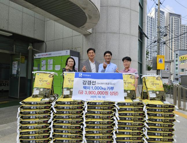 | ▲ 수원시 장안구 정자1동 SK마이크로웍스, 추석 맞아 어려운 이웃에 쌀 1,000kg 기부 |