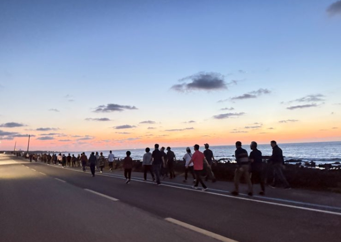 [무한뉴스=정민정 기자] 서귀포시는 일상생활 속 1일 7천 보 걷기 활성화를 위하여 11일 새벽 5시 신산리 마을주민들과 함께하는 '힐링 UP! 혼디모영 걸을락(樂)' 신산마을걷기를 운영했다.