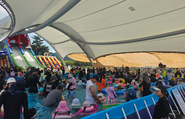 행사장에는 11m 높이의 대형 워터슬라이드와 유아·어린이용 소형 슬라이드 2개를 설치해 남녀노소 누구나 즐길 수 있는 물놀이 공간을 제공했다.