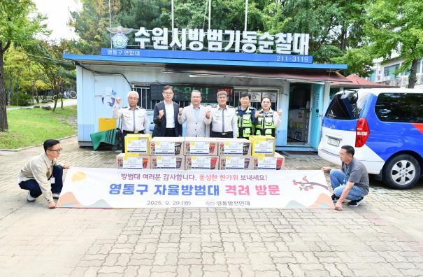[무한뉴스=양현명 기자] 지난 29일, 수원시 영통구 영통발전연대는 다가오는 추석 명절을 맞아 영통구 자율방범대 초소를 방문하여 격려 물품을 전달했다.