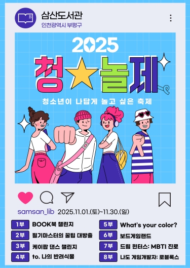 | ▲ 부평구립 삼산도서관, 2025년 청소년 문화축제 ‘청★놀제: 청소년이 나답게 놀고 싶은 축제’개최 |