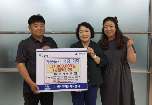 | ▲ 좋은사람모임, 포천 선단동에 이웃돕기 성금 700만 원 전달 |