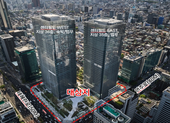 대상지는 지하철 2호선 역삼역과 선릉역 사이, 테헤란로 중심부의 센터필드 교차로 인근에 위치해 교통 접근성이 우수한 지역이다. 해당 부지는 2021년 준공된 센터필드 WEST동 일부(지하 1~2층, 지상 3~4층, 24~36층)로, 현재 호텔로 임대 운영 중이다.