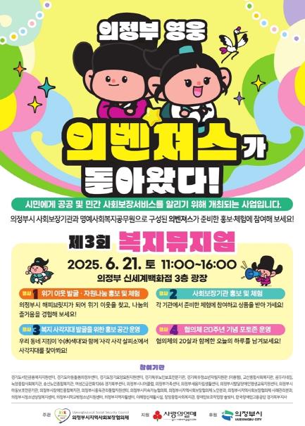 [무한뉴스=정승훈 기자] 의정부시는 6월 21일 시민과 함께하는 ‘제3회 복지뮤지엄’을 신세계백화점 의정부점 3층 광장에서 오전 11시부터 오후 4시까지 개최한다.