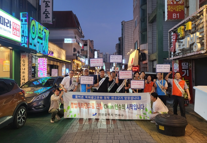 [무한뉴스=정승훈 기자] 연수구는 도시미관을 저해하고 구민과 방문객들의 보행 불편을 초래하는 불법 광고물을 정비하기 위해 상가 밀집 지역을 중심으로 불법 광고물 민·관 합동단속을 실시했다.