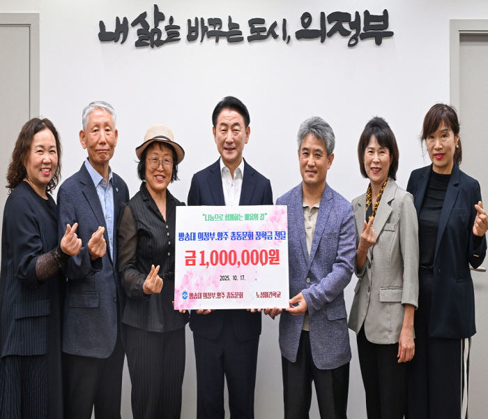 [무한뉴스=정승훈 기자] 의정부시는 10월 17일 한국방송통신대학교 의정부·양주 총동문회가 ‘일일찻집’을 통해 마련한 수익금 100만 원을 노성야학에 장학금으로 전달했다고 밝혔다.