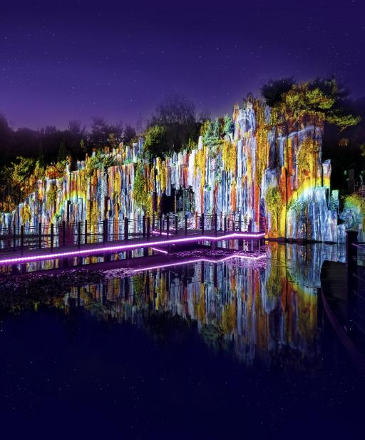 ▲ 절리폭포에 투영된 프리쇼 ‘기상낙원’ 모습