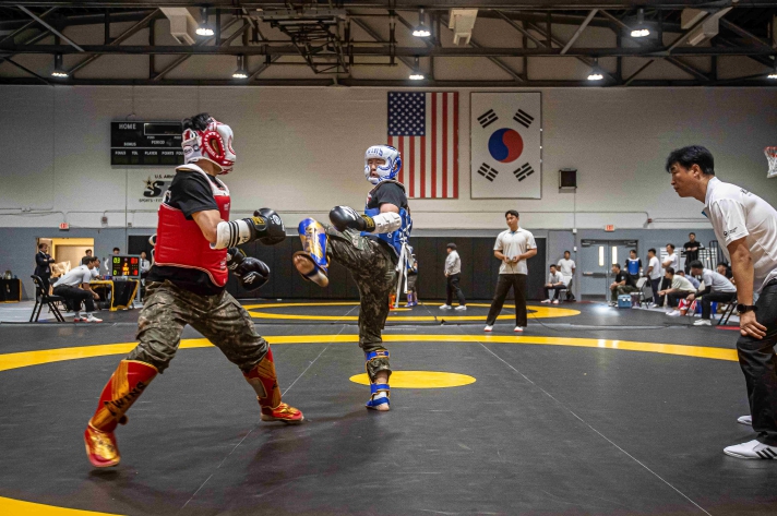| ▲ 지난 2023년 7월 개최한 ‘2023 한미친선 전군 태권도 경연대회’에서 참가 선수들이 전투 태권도 겨루기를 하는 모습 |