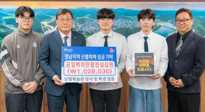 ▲ 남명학습관 강사 및 학생 일동, 영남지역 산불 피해돕기 성금 기탁 |