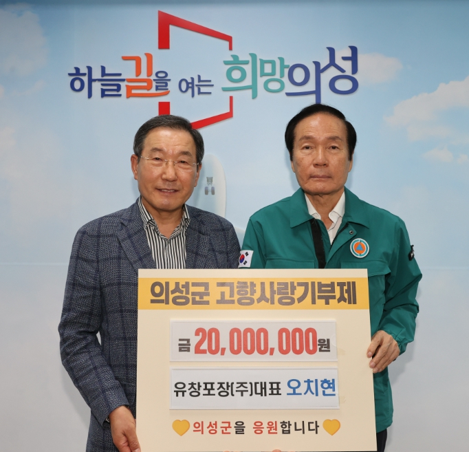 [무한뉴스=최진수 기자] 의성군은 지난 4월 24일 유창포장(주) 오치현 대표이사가 고향사랑기부금 2,000만원을 기탁했다고 밝혔다.