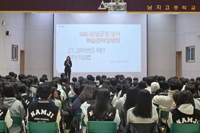 [무한뉴스=최진수 기자] 창녕군은 지난 4일 남지고등학교에서 1~2학년 학생 240명을 대상으로 ‘EBS 대표강사 초청 학교로 찾아가는 학습전략 설명회’를 개최했다. 이로써 군은 올해 계획된 EBS 대표강사 초청 학습전략 설명회를 모두 성공적으로 마무리했다.