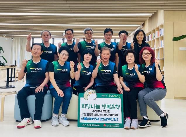 ▲ 수성구 배드민턴 동호회 ‘샛별클럽’은 최근 대규모 산불로 피해를 입은 경북 지역 주민들을 돕기 위해 성금을 기탁했다. |