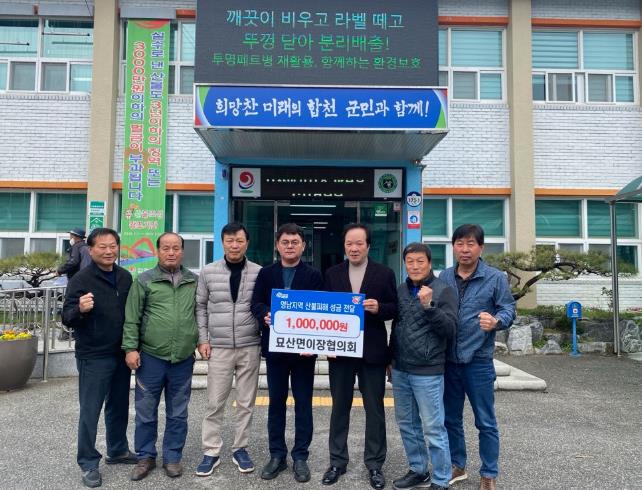 ▲ 합천군 묘산면이장협의회, 영남지역 산불 피해 돕기 성금 기탁 |